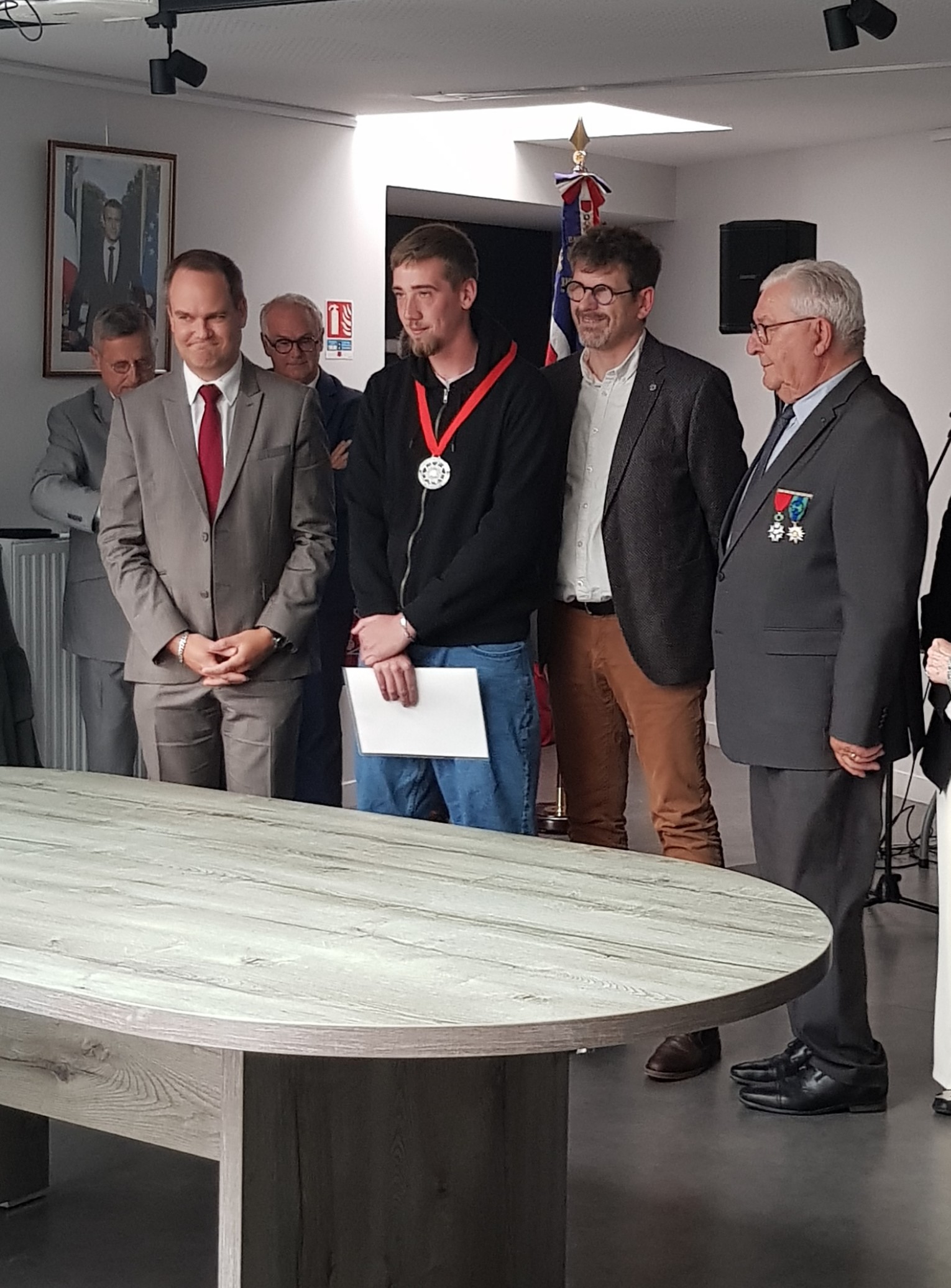 Deux vice-présidents de notre Association, Richard Maury et Jean-Jacques Leroy, accompagnés de la secrétaire adjointe, Nathalie Guérard, ont assisté, à l’invitation de la SMLH, et en présence de nombreuses personnalités et des familles, à la remise des prix et accessits de la Société des Membres de la Légion d’Honneur du Calvados à six élèves méritants du Lycée maritime et aquacole de Cherbourg, sélectionnés sur la base de leurs mérites personnels, scolaires et professionnels respectifs. Ces six élèves ont reçu une médaille gravée à leur nom. Trois ont reçu ont obtenu un prix d’encouragement avec félicitations du jury, deux ont reçu le Prix du Mérite et le lauréat départemental a décroché le prix d’excellence ; il représentera le Calvados au Prix national le 15 novembre prochain